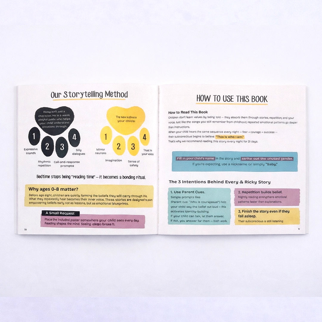 & Ricky can be fun for all ages! The best time to introduce & Ricky stories is as a baby shower gift. Reading, talking, and singing to infants has proven beneficial to growth and development. If you’re new to & Ricky, we find that the sweet spot of our age range is 0-4 years old, but reading-aged kids continue to benefit from the lessons and stories as they grow. Finally, research shows that the inner voice is set for kids by the age of 8! This means that instilling a positive self-talk track is critical during their early development.